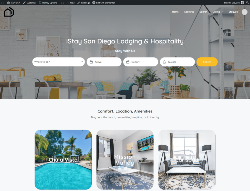 Developed and designed by our team in 2023, iStay-Min is a modern platform for booking lodging and hospitality services in San Diego. We integrated APIs to check real-time hotel availability, room prices, and bookings. The system provides seamless functionality for users to find the best lodging options based on their criteria. Our team handled the entire process from branding to development, including the complex API integration, to ensure smooth operations for both users and property owners.