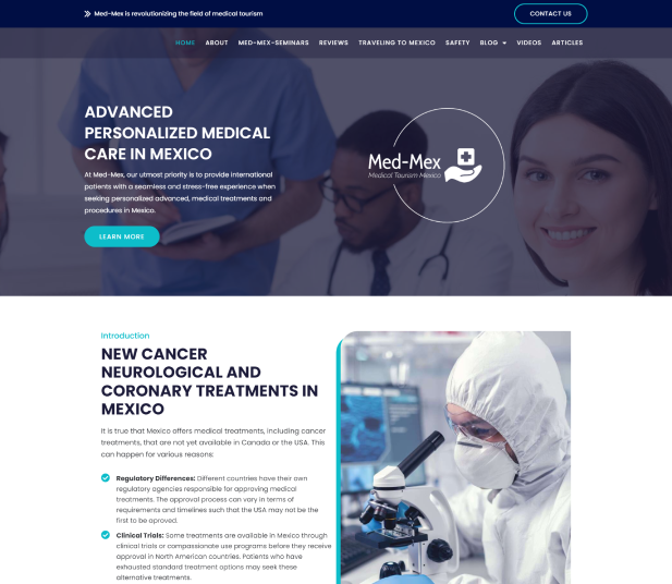 Med-Mex Medical is a cutting-edge platform offering advanced medical tourism services, focusing on stem cell treatments. Developed using WordPress, the site was designed and launched in 2024 to cater to international patients seeking specialized treatments in Mexico. The platform emphasizes seamless user experience, showcasing the various medical services and personalized care offered. The branding and UI/UX design were tailored to reflect the professionalism and innovation behind the medical services provided.